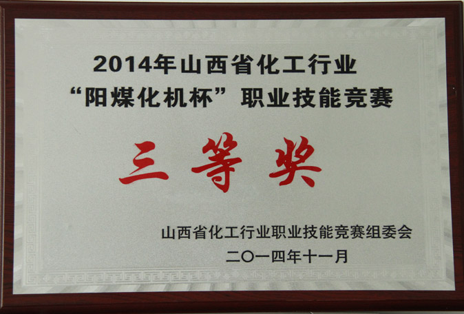 2014年11月,公司榮獲2014年度山西省化工行業“陽煤化機杯”職業技能大賽三等獎