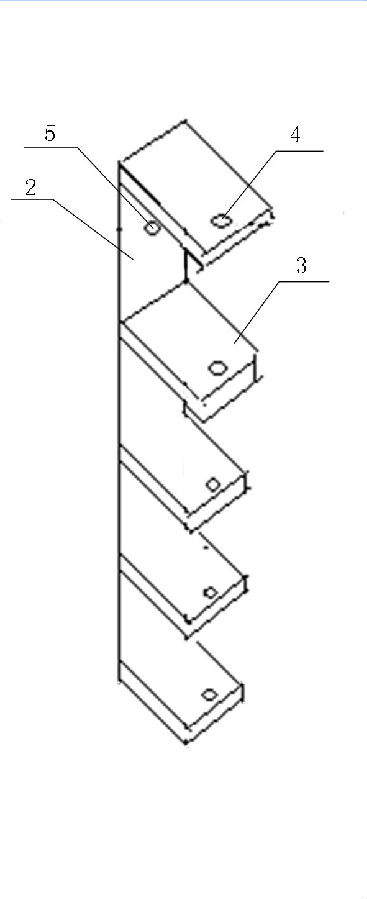 圖中: 1-插銷,2-基板,3-隔板,4-插銷孔,5-螺栓孔。