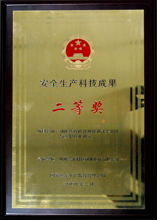 2009年2月,公司榮獲“安全生產(chǎn)科技成果二等獎(jiǎng)”