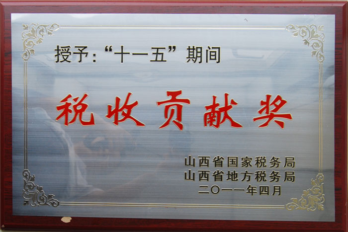 2011年4月,山西省國家稅務局、山西省地方稅務局授予公司“十一五”期間稅收貢獻獎