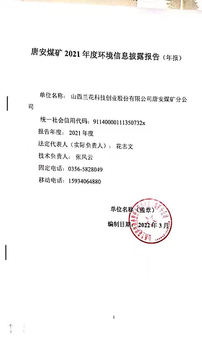 唐安煤礦分公司2021年度環境信息披露報告.docx